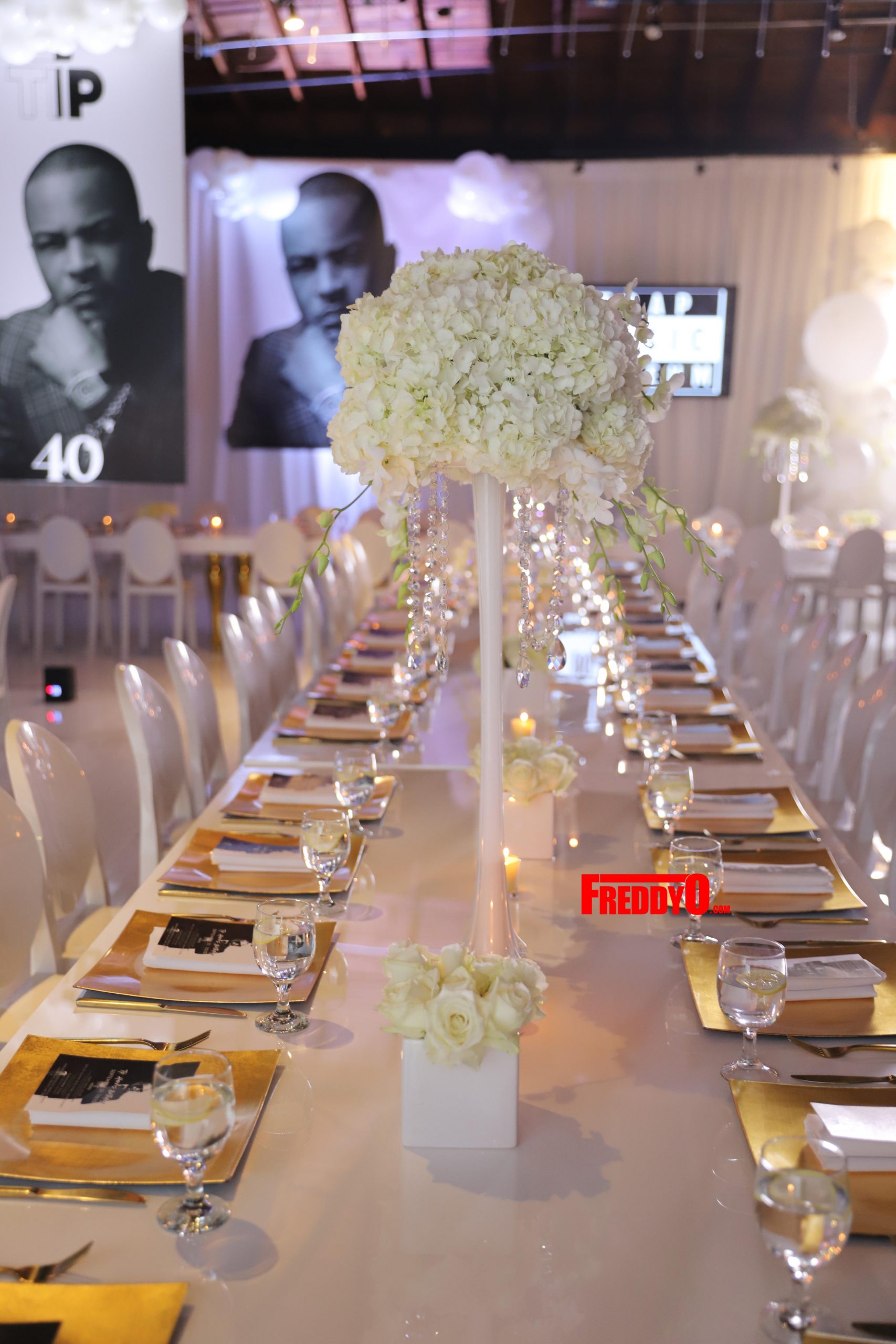 Rapper Clifford “T.I.” Harris celebrated his 40th birthday over the weekend in grand style! Lots of local celebrities came out to join in on all the festivities with a black and white affair! The event was held at Carlyle in Atlanta. Guests on top of guest poured in to celebrate with the iconic rapper dressed to the nines. They dined on salmon and grits and signature cocktails were given out throughout the private dinner party. I have a few snaps from the event inside but I spied Kandi Burruss, 2 Chainz, Rasheeda, Comedian Lil Rel, Toya Wright, T.I.’s adorable family and so many more! More pics inside…