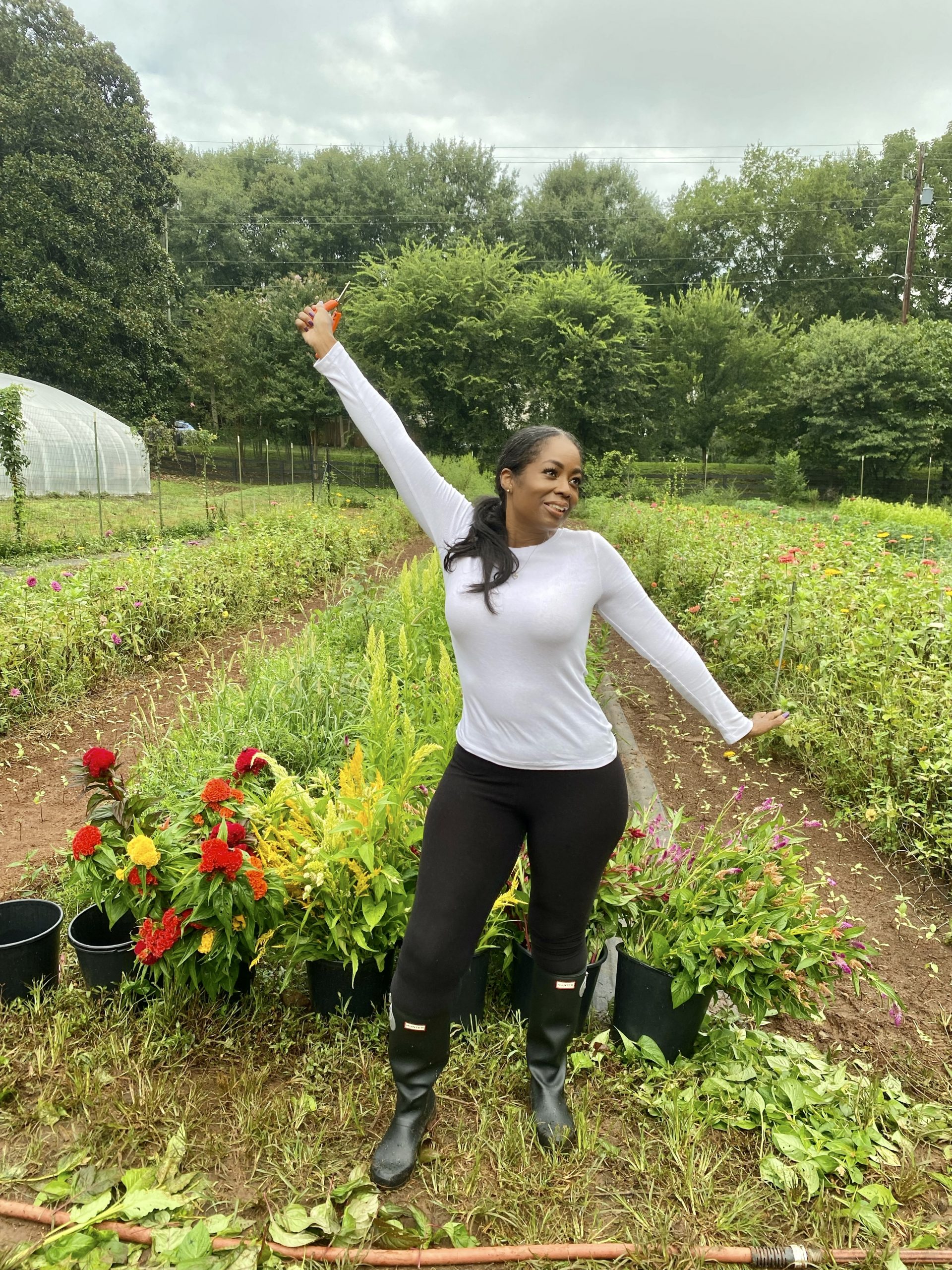 Today was so much fun! I started volunteering at Posie Fields flower farm in Roswell, Ga. You may be wondering what in the heck made me want to do that but I actually find the farm very therapeutic n relaxing. Plus its’ a bonus for me because I get to be around all the pretty flowers! Today I learned about all the flowers, how they grow, when they need to be harvested, how to strip them and finally how to make bouquets!