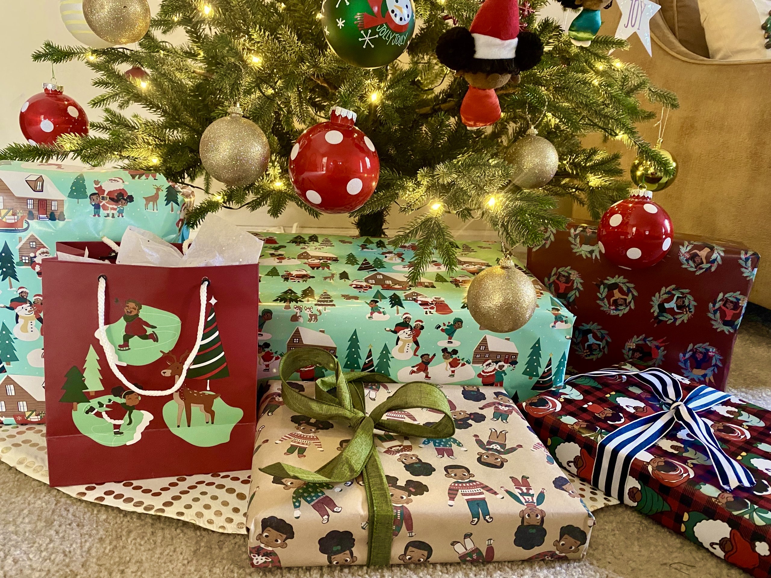 I was sent the Black Paper Party Gift Wrap Multipack-Snow Days Off, gift bags and the Gnomie ornaments that are too adorable! I quickly started to wrap presents and placed them all under my Christmas tree. Whew, I got so much out the way! Take a peek inside and hurry to place your order, the holidays are right around the corner!