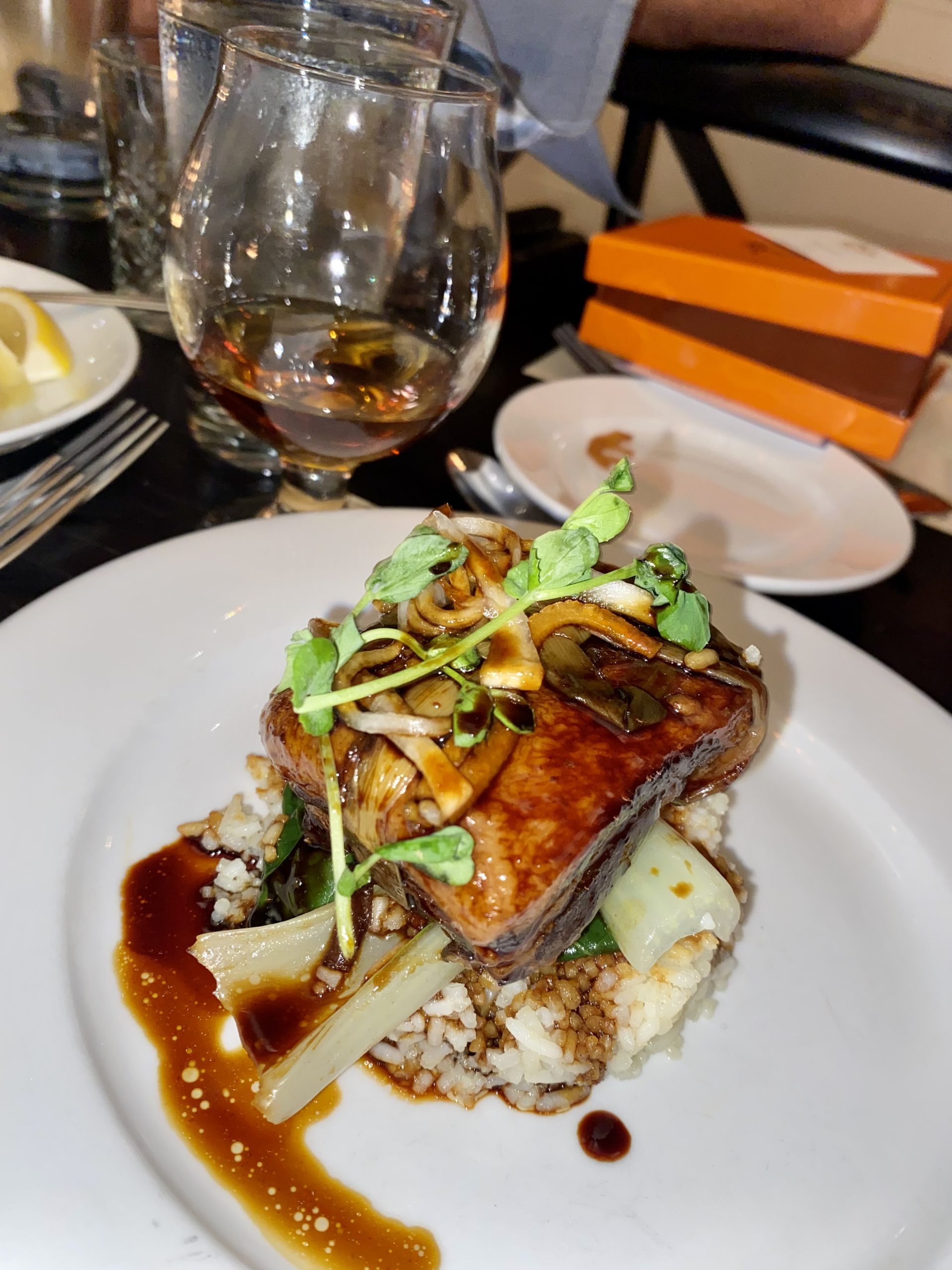 Course 1: Seared Pork Belly Dongpou Roo Pork Belly, Choy Sum and Coconut Jasmine Rice