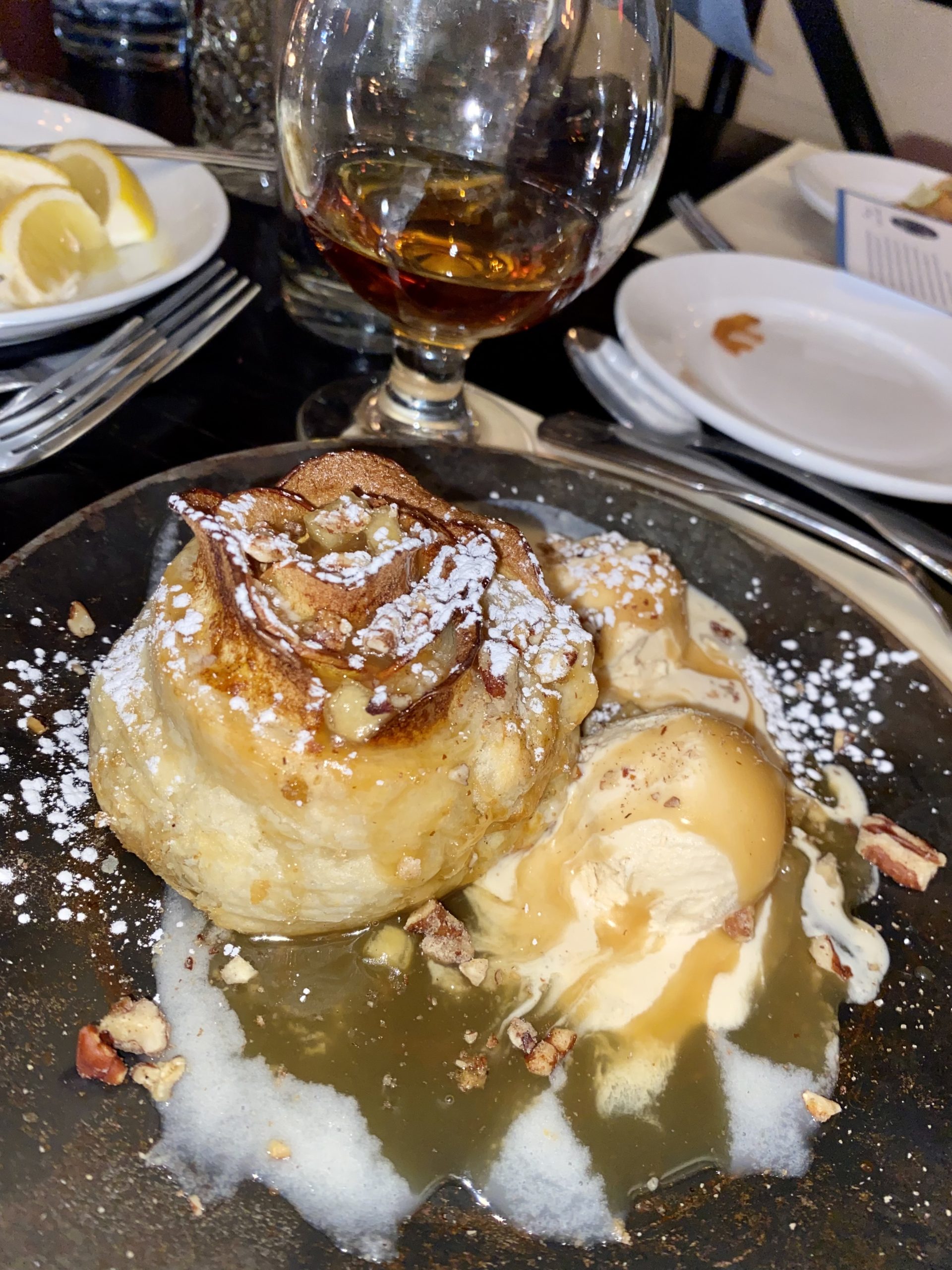 Course 3: Burbon Smoked Apple Tart Bourbon Burnt Ice Cream, Woodford Reserve Malt Infused Caramel, Rose Puff
