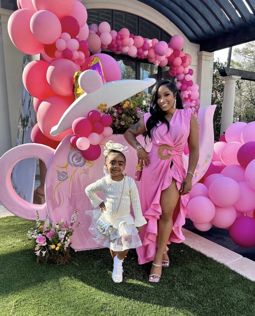 The weather was perfect this past weekend and great for a fun party! Toya Johnson attended reality star Porsha Williams’ daughter Pilar’s birthday party with her daughter Reign. They were too cute for words when they showed up! You gotta love a great tea party and the girls were styled to the nines in their garbs. Toya opted out for an asymmetrical styled pink ruffled dress with sandals for the occasion. She has always said that she loves a great themed-party and her and her mini me looked adorable. More pictures inside and the what she was wearing…