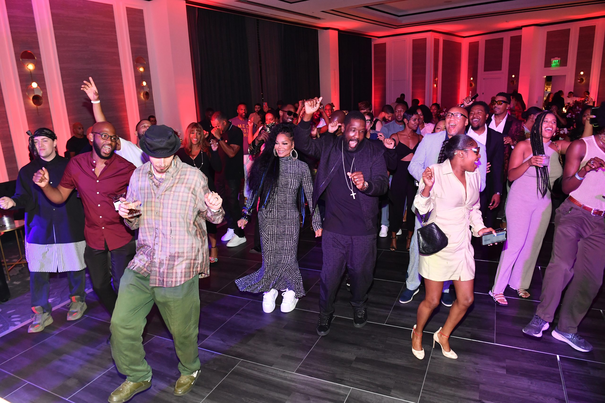 Janet and friends danced all night to sounds by DJ Aktive which was captured with the now viral clip of her swag-surfing and leading the electric slide- flooding social media. Other guests included Debbie Allen, DJ D-Nice, Marsai Martin, Actress Sidra Smith, Angelica Ross, and more…