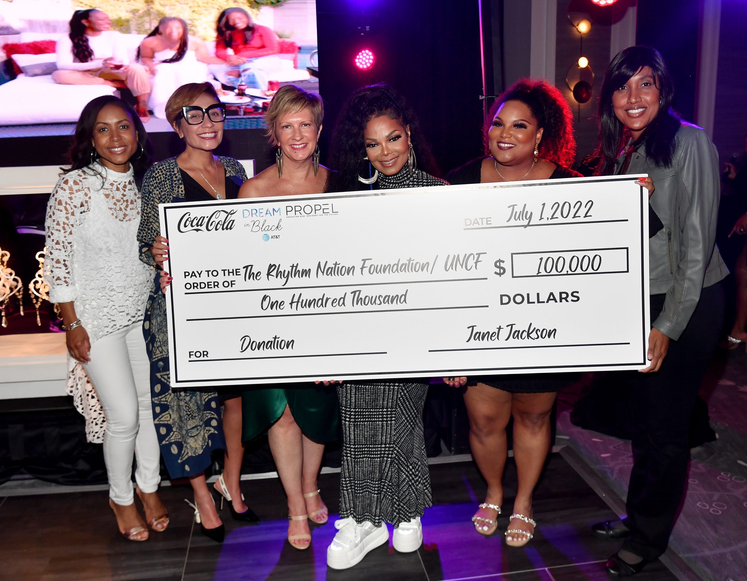 A party with a purpose, Event Partners Coca-Cola’s If Not For My Girls, AT&T Dream In Black, Essence’ Girls United and the Propel Center were all campaigns and initiatives spotlighted during the celebration. Janet’s Rhythm Nation Scholarship Fund in partnership with the United Negro College Fund was also presented with a $100,000 donation and commitment from Sponsors.