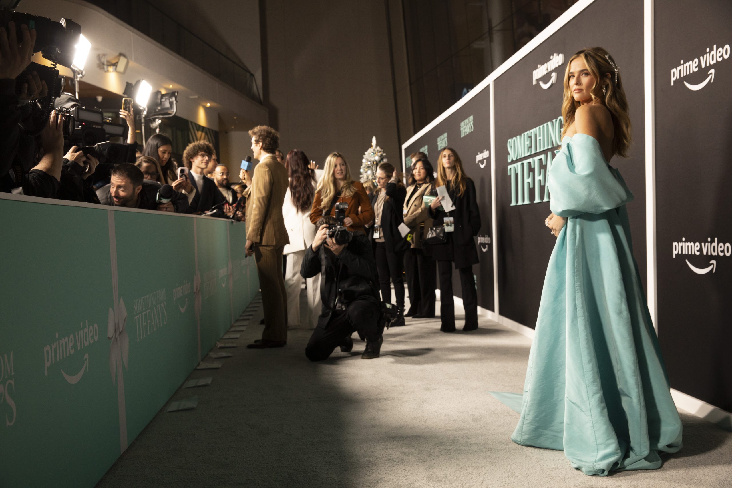 Deutch arrived in an off-the-shoulder Tiffany blue satin gown but can you blame her? It just goes with the theme of the movie and I must admit, she looked like a princess and she owned the carpet that evening! She was stunning and the dress totally complimented her look. Something from Tiffanys is based on the romance novel by Melissa Hill.