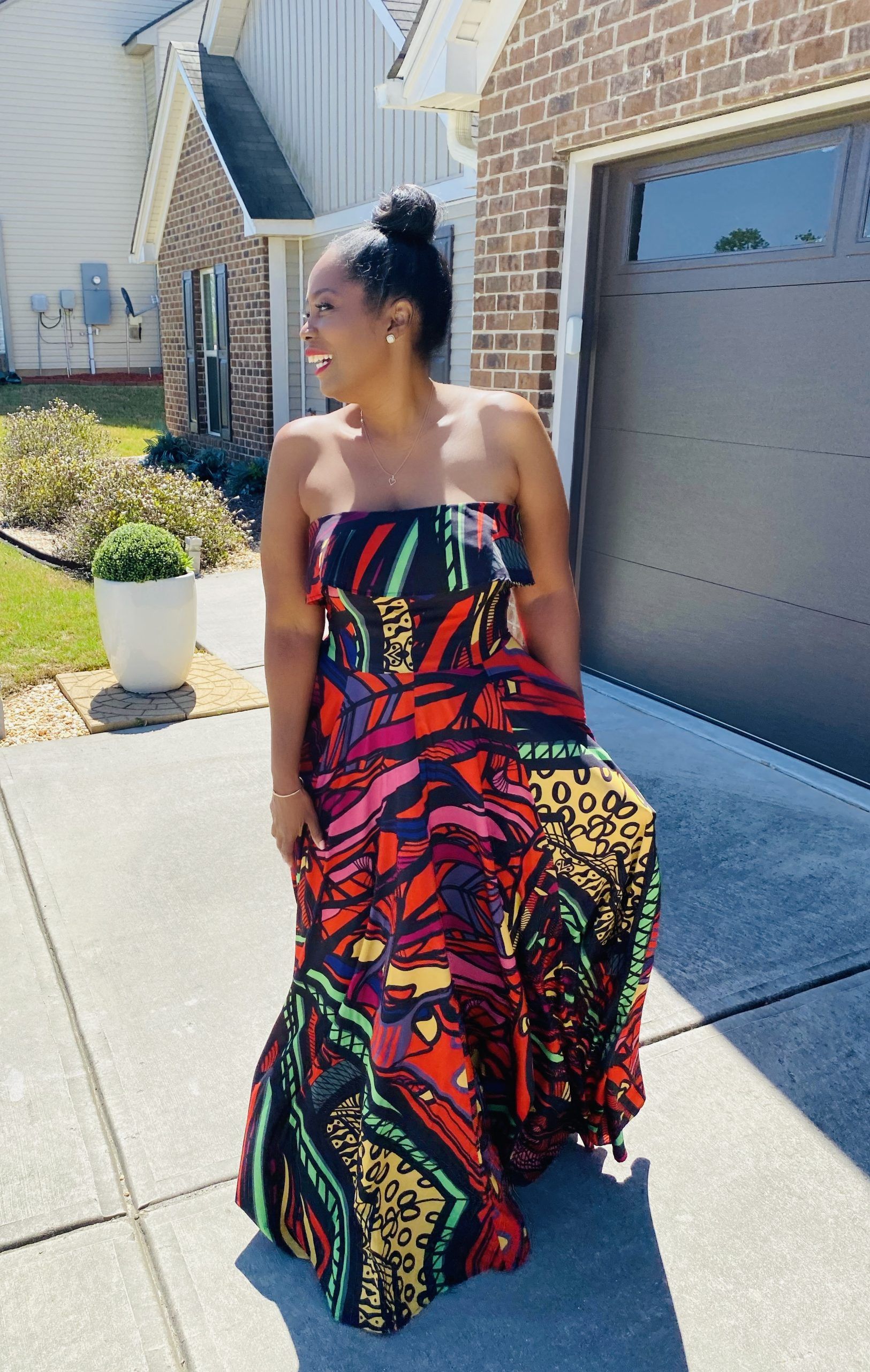 The owner, fashion designer and longtime friend Kahindo Mateene was so kind to send me over this lovely red Dipo X Kahindo custom multi-print silky Japanese luxurious strapless gown that features a ruffle detail and full twirl-worthy skirt with pockets ofcourse! I’m in heaven and love the print and feel of it! It’s so elegant and can be worn to a garden party, bridal shower, dinner cruise, red carpet event, the sky is the limit! See more photos and where to find inside…