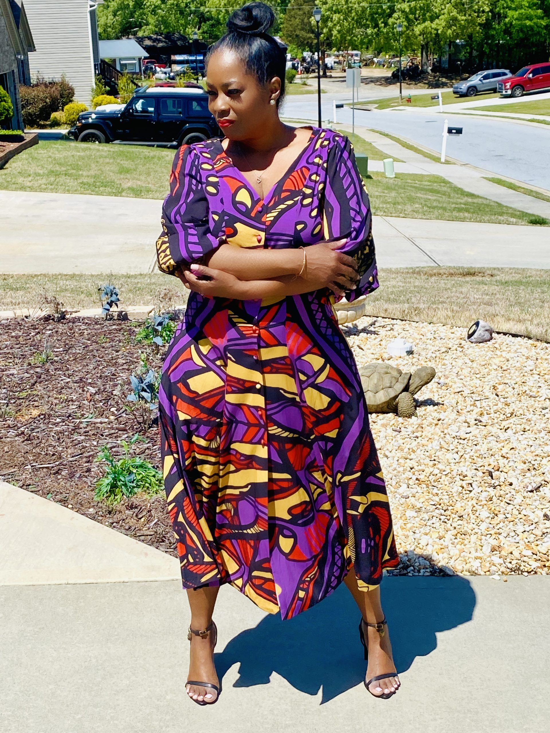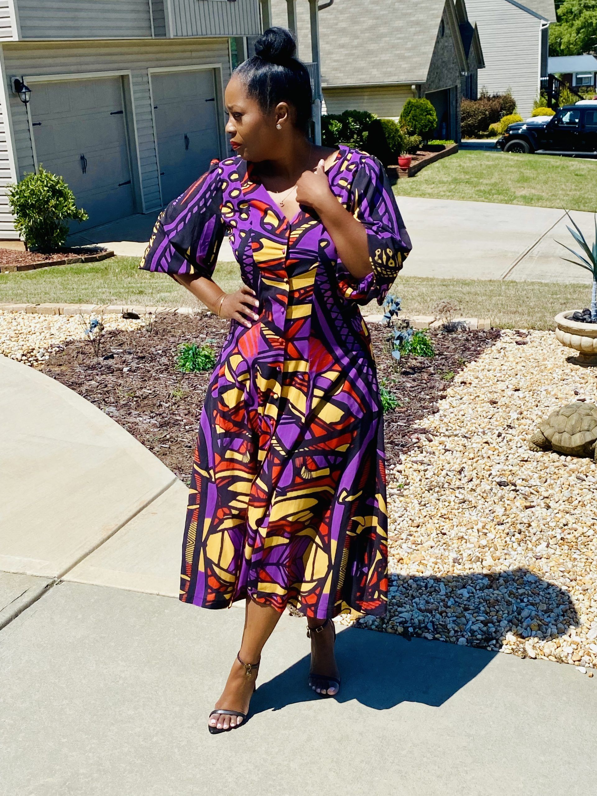 Happy Friday everyone! I hope you guys are staying safe out there! The weather has been warm with sunny skies, so I thought to run a few errands in this cute dress today! This Kahindo midi dress brought a smile to my face when I pulled it out the closet! I’ve been moving for about a month now, so I’ve been in sweatshirts and leggings and I’m almost finished!