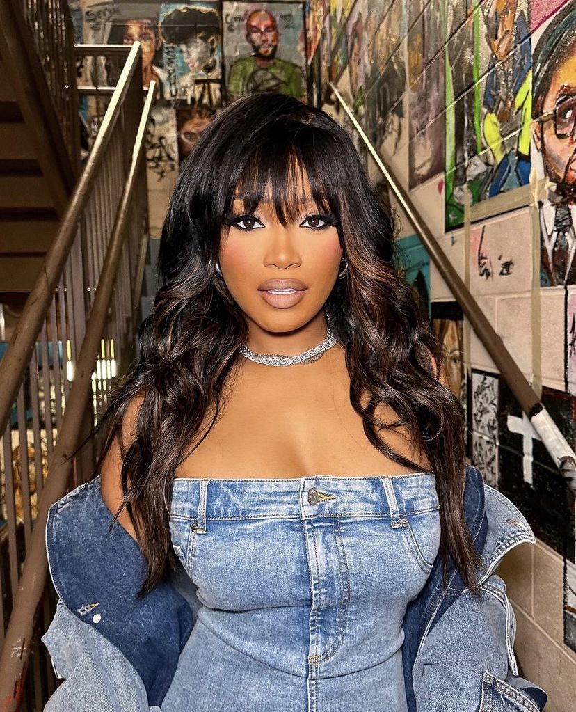 Actress KeKe Palmer looked amazing the other day when she posted on her instagram! She posed for the gram wearing a complete denim look. The mom of one wore a denim strapless mini dress with matching jacket for a sit down interview about her new project, Big Boss!