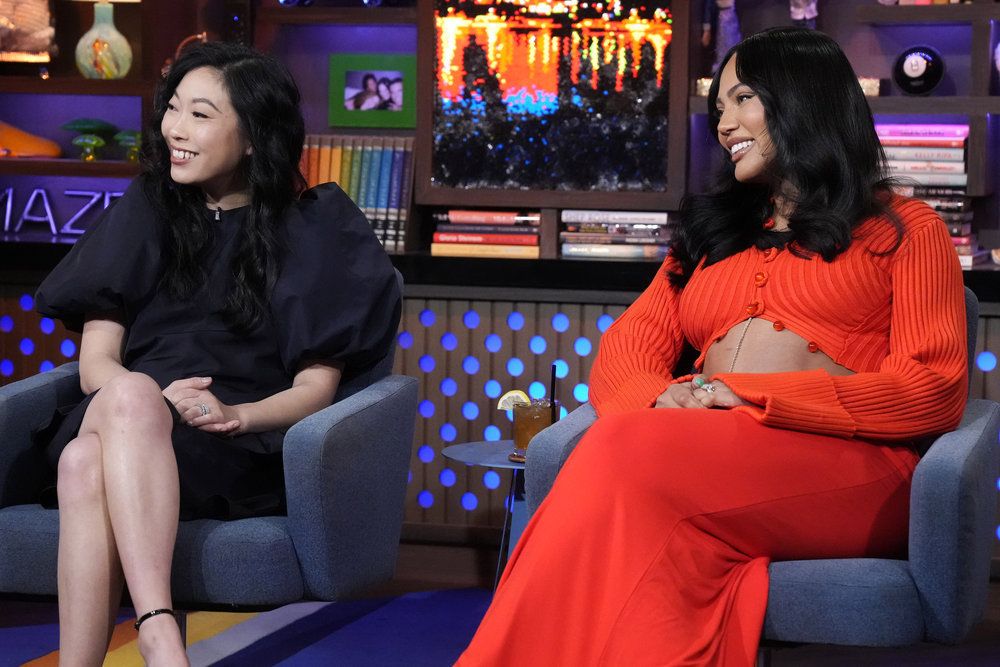 It was Ayesha Curry and Awkwafina first time in the clubhouse over at Watch What Happens Live with Andy Cohen! During “Clubhouse Quickie,” Awkwafina revealed that the first concert she’s ever been to was a Good Charlotte show while Ayesha Curry says she saw M2M in the middle of a mall. Awkwafina also said she splurged on a Sedan rental with her first big paycheck and Ayesha bought herself a Mercedes truck. Plus, Ayesha revealed the first meal she ever cooked for her husband Stephen Curry and Awkwafina said Sandra Bullock is the most famous person in her phone.
