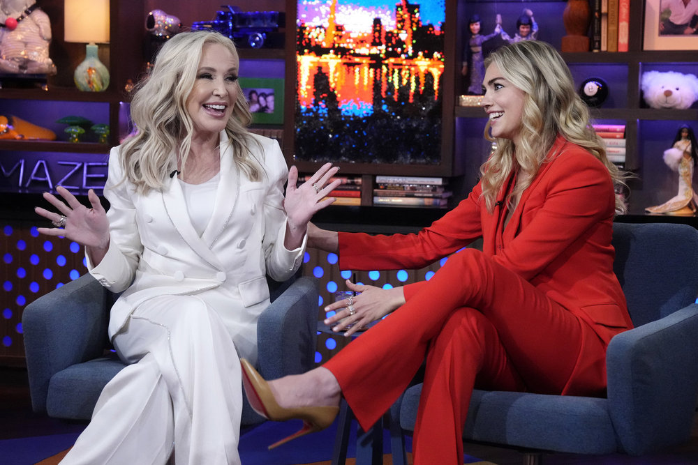 They had a lot of fun over in the clubhouse at Watch What Happens Live with Andy Cohen the other night! Supermodel Kate Upton and Orange County Housewife Shannon Storms Beador were the guests! During “Work! The! Polls!”, Kate said she thinks Alexis Bellino was rubbing her relationship with John Janssen in Shannon Storms Beador’s face because Shannon hadn’t brought it up. Kate also said Slade Smiley is a more iconic Housewife Hopper than John Janssen, thinks Shannon owns The Quiet Woman and says it was hard to watch Gina Kirschenheiter make the decision to move out because she depended on her boyfriend Travis Mullen during her separation.