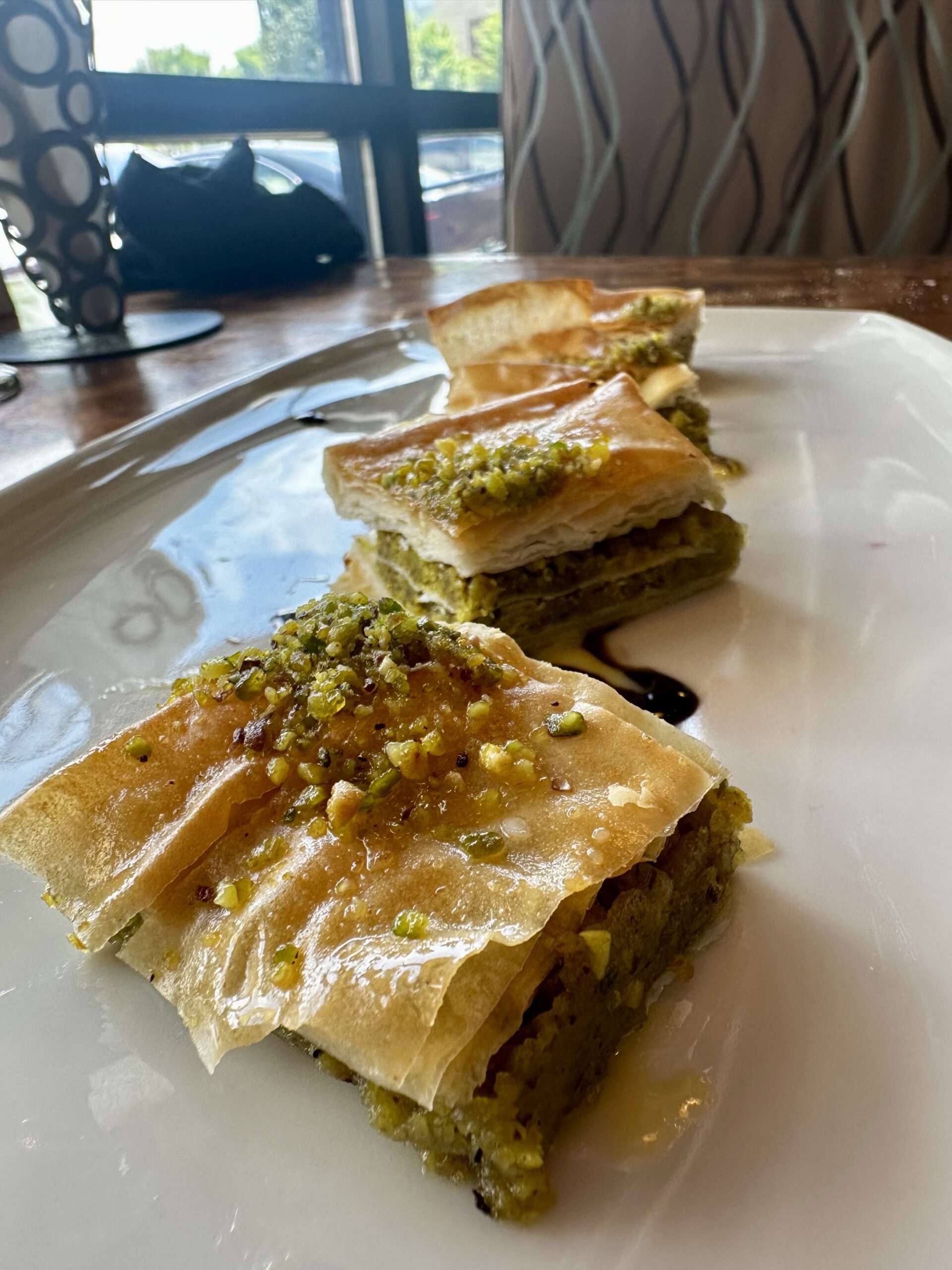 Middle Eastern desserts are typically sweet and rich, often featuring ingredients like dates, nuts, and honey. Popular desserts include baklava, ma’amoul, and halva. We enjoyed the baklava, yummy!