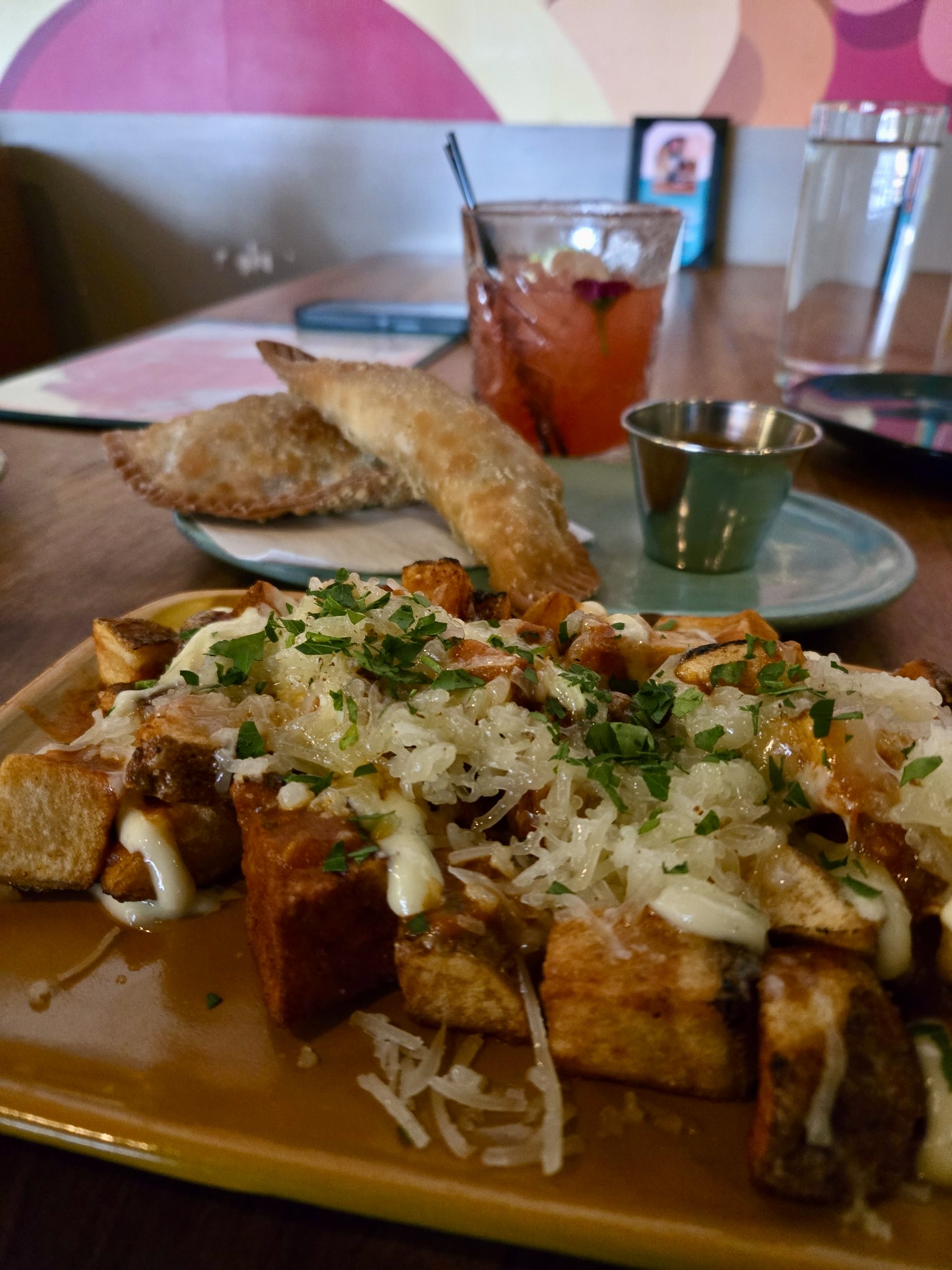 Now, let’s talk about the food! We indulged in a scrumptious brunch that included French toast, shrimp and grits, and a must-try appetizer crispy, flavorful empanadas that were an absolute hit! And the cocktails? Pure perfection, seriously. We wrapped things up with a sweet dessert that left us wanting more.