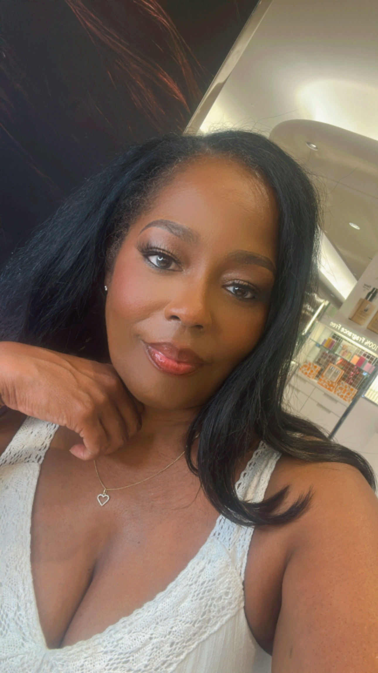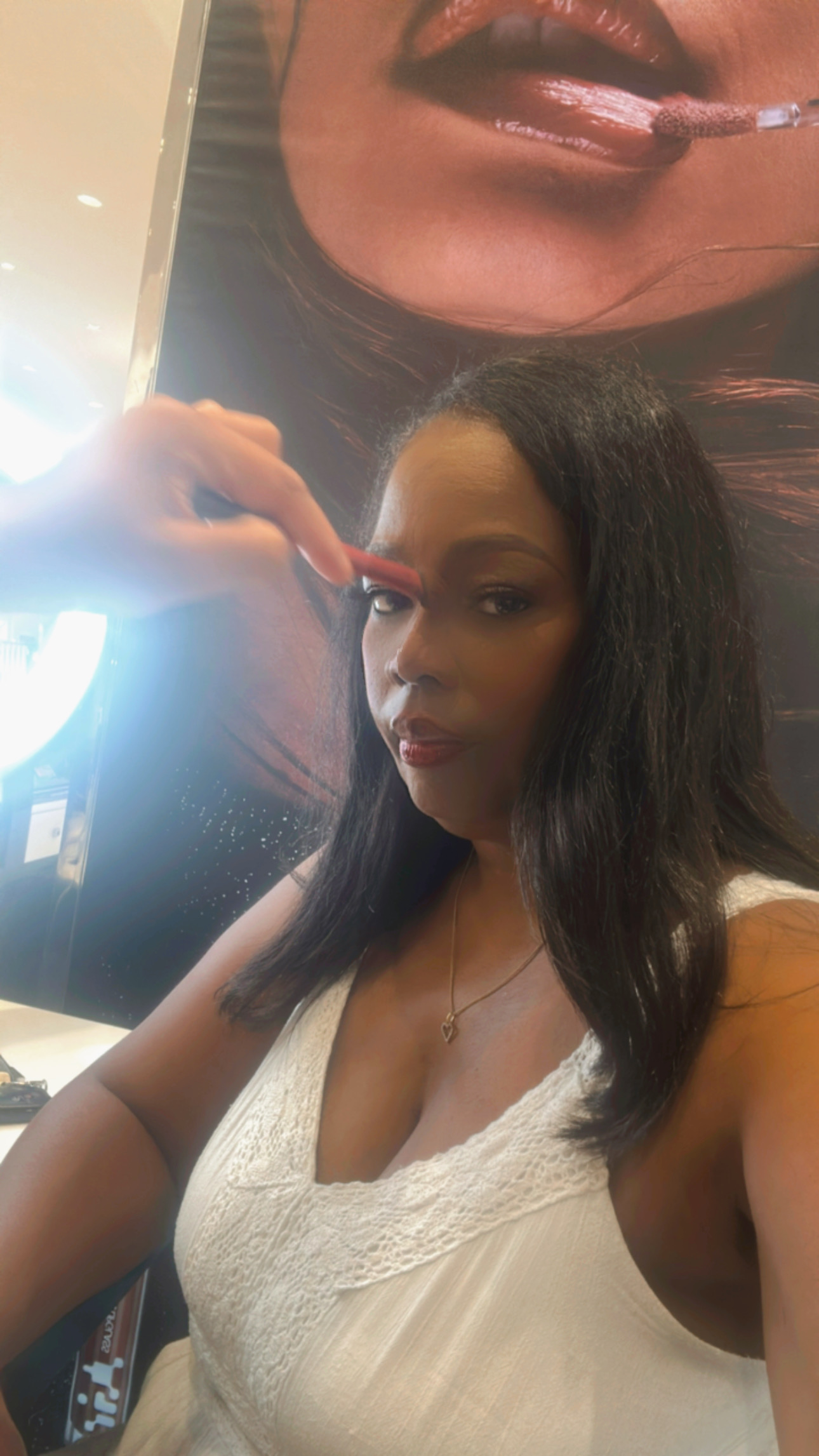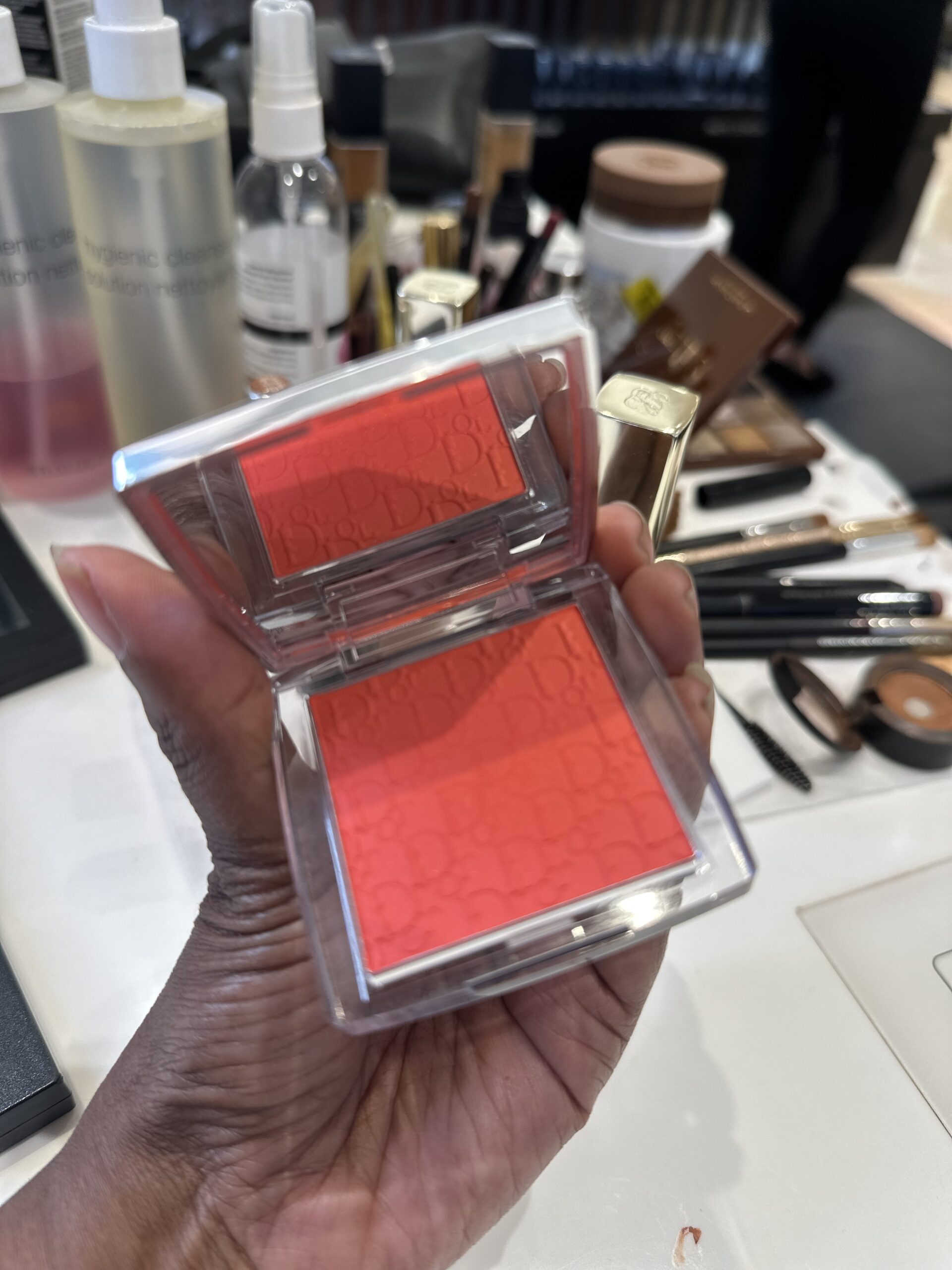 Not too long ago, I had a red carpet event, so I popped in to see my dear friend PK, a phenomenal makeup artist at Dillard’s Mall of Georgia who always works magic on my face. I’m the type who lets a makeup artist have creative freedom as long as it complements my outfit and PK never disappoints. This time, she introduced me to a new blush from Dior Backstage, the Rosy Glow blush in the shade Cherry. I instantly fell in love! It’s such a dreamy, radiant pop of color on my skin tone that I couldn’t resist purchasing it right away.