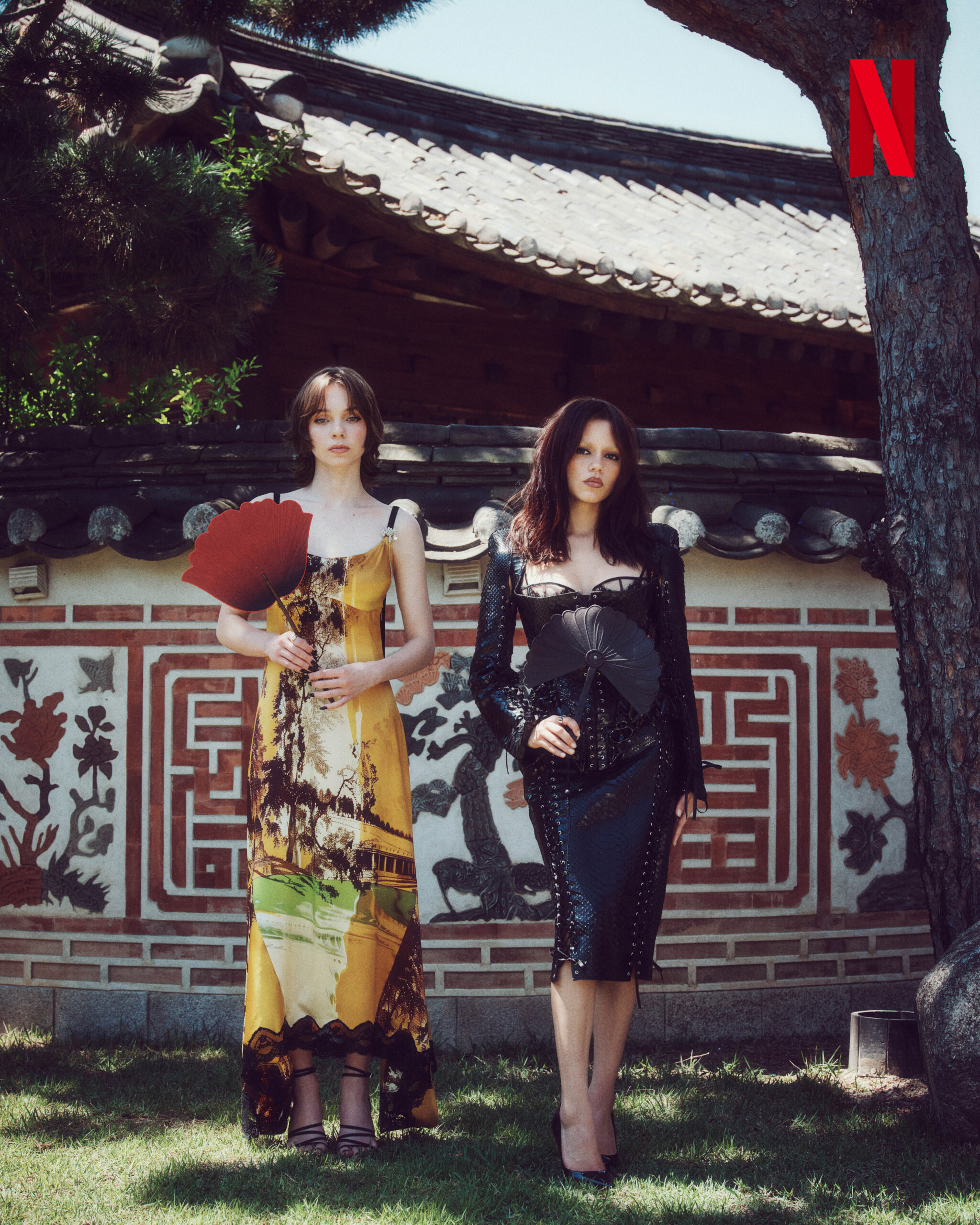 Emma and Jenna Ortega(wearing Dilara Findikoglu)