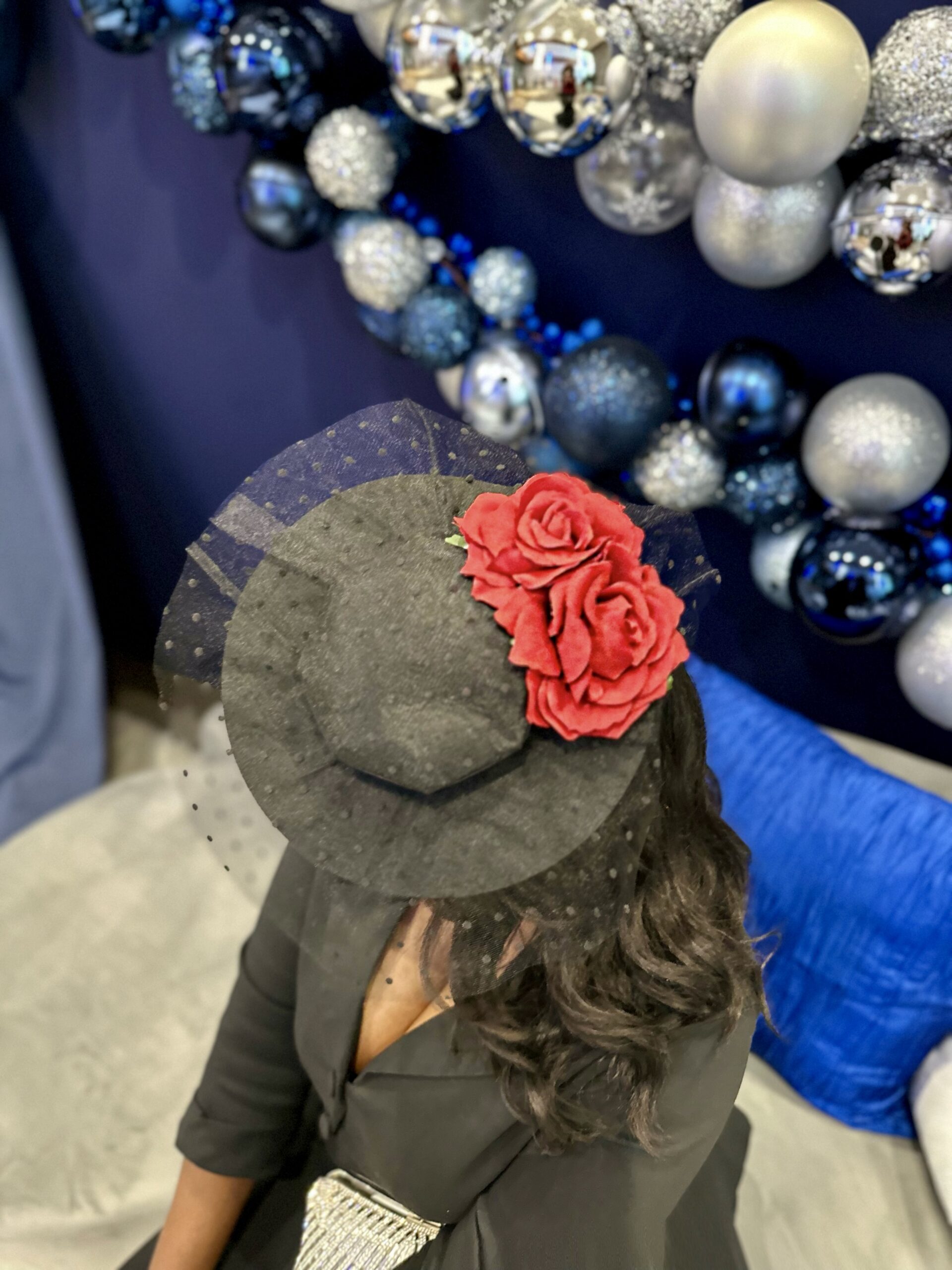 For the occasion, guests were encouraged to embrace their holiday best so naturally, I reached for one of my favorite fascinator and a peplum-style dress that exuded classic glamour, paired with striking red patent leather sandals for the perfect finishing touch.