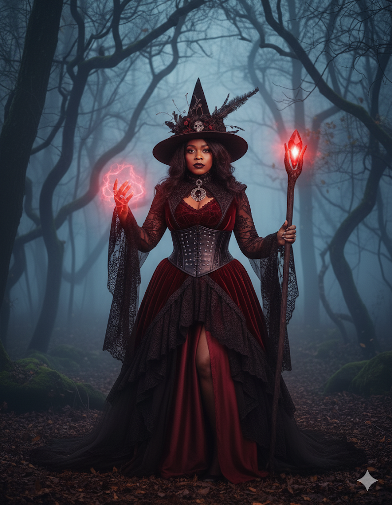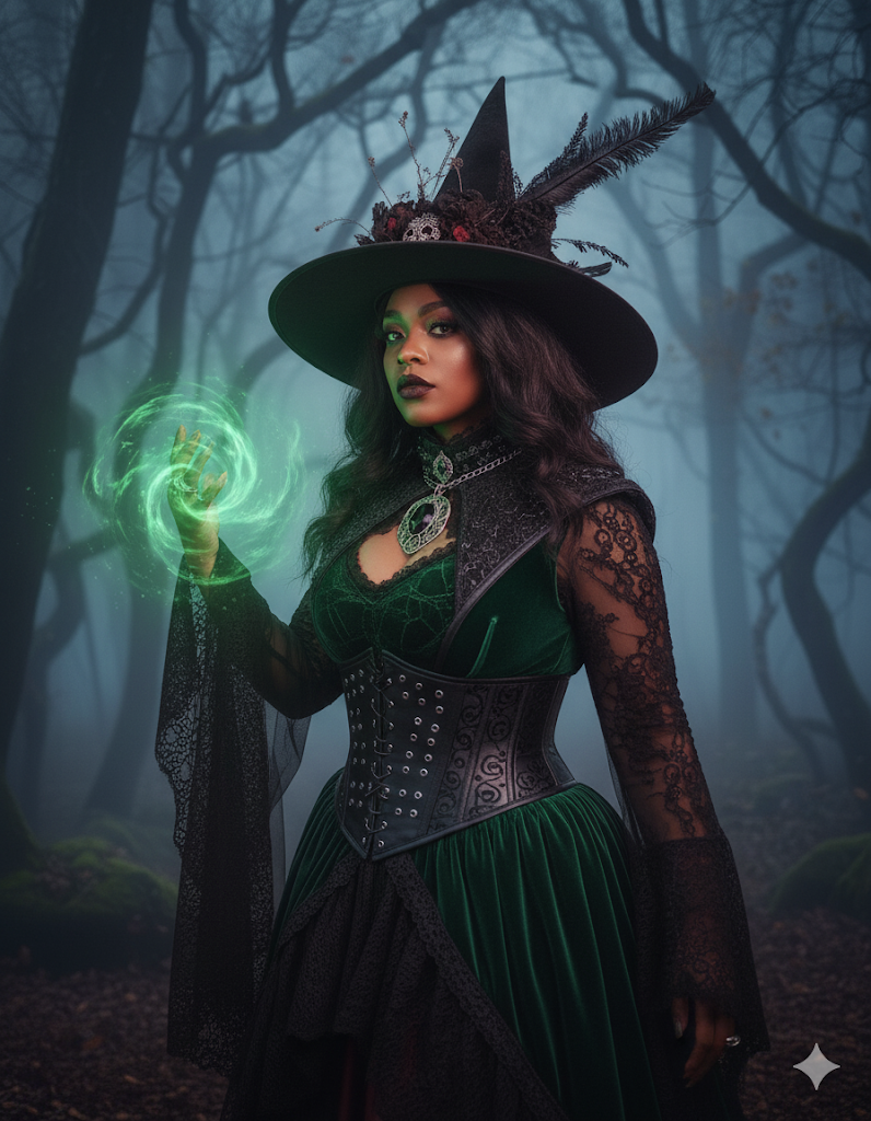 Bonus Tip: If you’re going for a Halloween twist, add accessories like a lace cape, faux raven feathers, or a gothic crown — or even carry a spellbook or lantern for extra spooky flair.