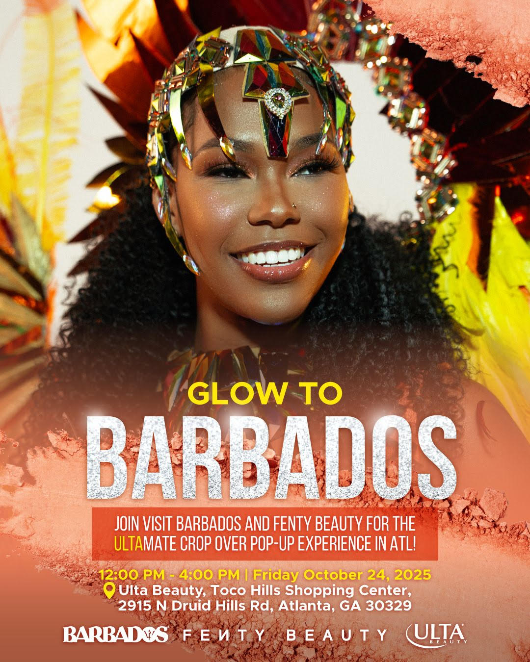 Barbados Tourism Marketing Inc. is teaming up with Fenty Beauty and Ulta Beauty to bring the magic of the islands to Atlanta! The Ulta Beauty store at Toco Hills will be completely transformed into a dazzling celebration of Bajan culture, beauty, and rhythm for the festive event titled “Let’s Glow to Barbados: Atlanta Edition.”