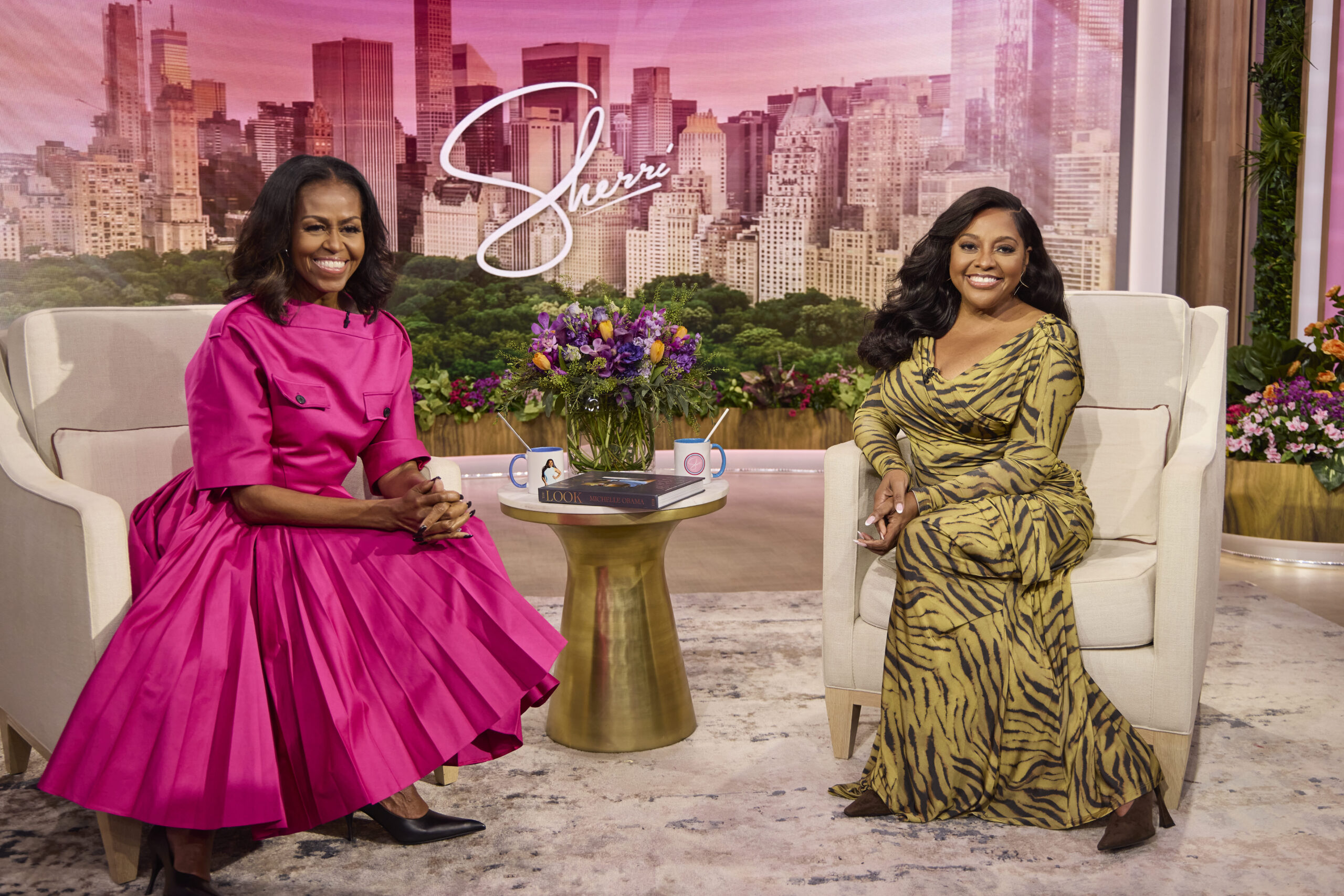 On today’s episode of SHERRI former First Lady Michelle Obama joins talk show host Sherri Shepherd to discuss her new book, The Look. The two Chicago natives reminisce about growing up on the South Side, sharing memories of Evergreen Plaza, Chic Rick’s, White Castle, Sears, and Funtown Amusement Park. They even break out in song to perform the Funtown theme and show off their steppin’ skills learned in Chi-Town.