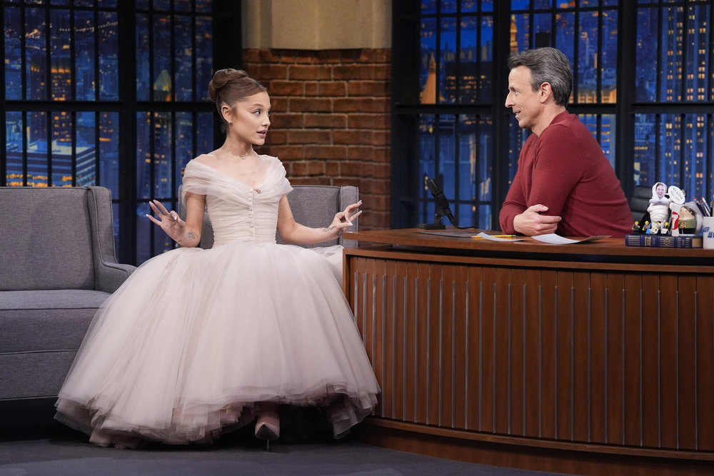 Ariana fully embraced her Glinda era once again, stepping onto the late-night stage in a look straight out of a modern fairy tale. While appearing on Late Night With Seth Meyers to promote Wicked: For Good and chat about her recent Saturday Night Live hosting gig, the Oscar-nominated star delivered pure enchantment in a custom Paolo Sebastian creation.