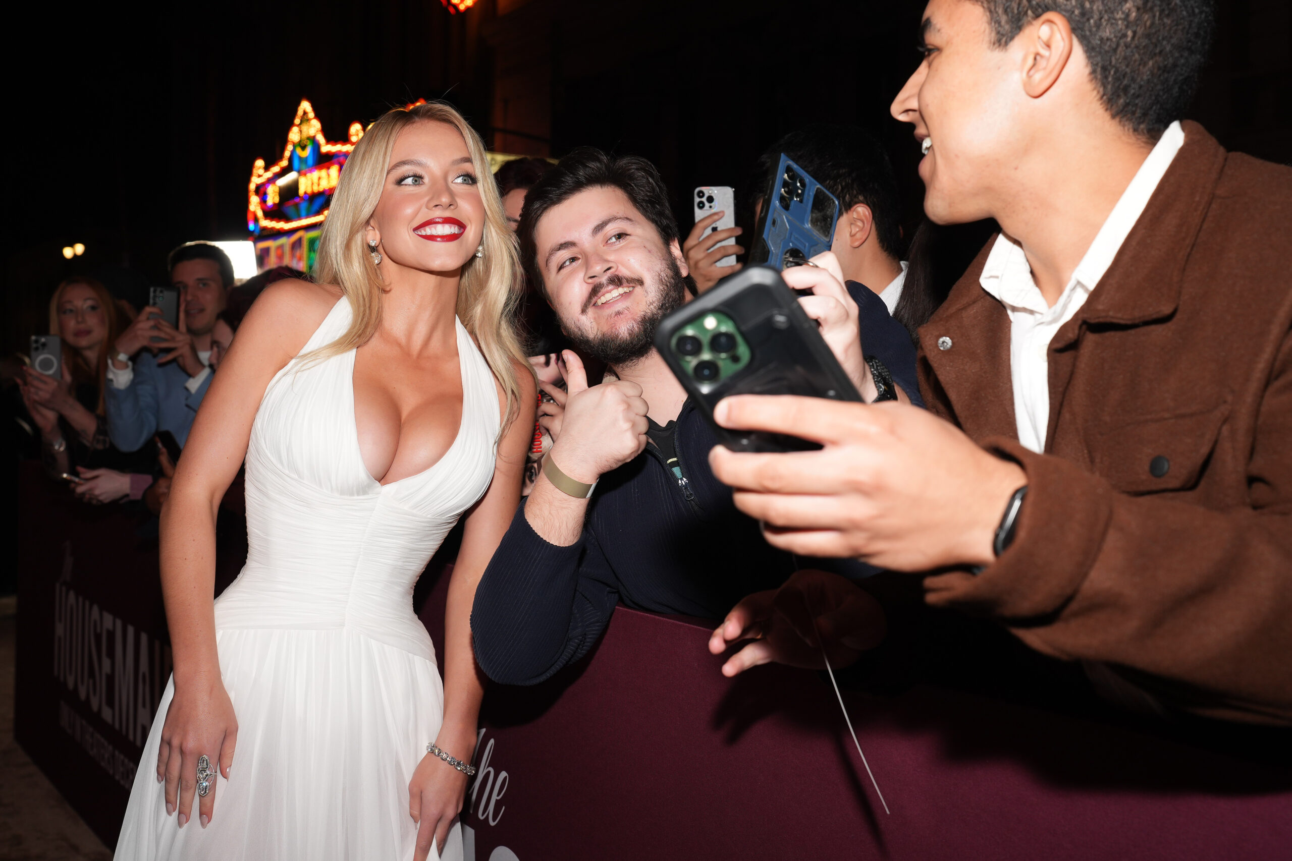 Sydney Sweeney brought classic old-Hollywood glamour to the carpet in a fully custom Galia Lahav gown, designed exclusively for the premiere. Fellow cast members in attendance included Indiana Elle, Megan Ferguson, and Ellen Tamaki, as well as director Paul Feig, who arrived with his wife, Laurie.
