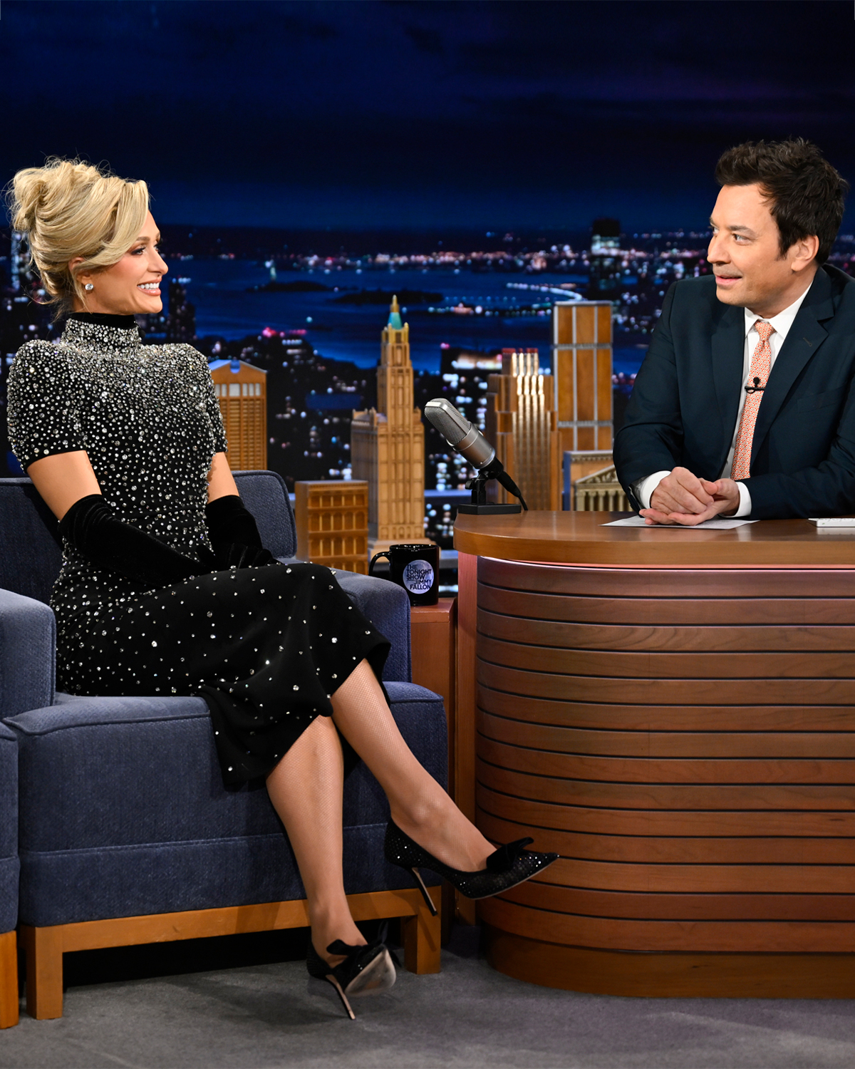 The post Celebrity Style: Paris Hilton’s Black Rhinestone Dress On Jimmy Fallon appeared first on Talking With Tami.